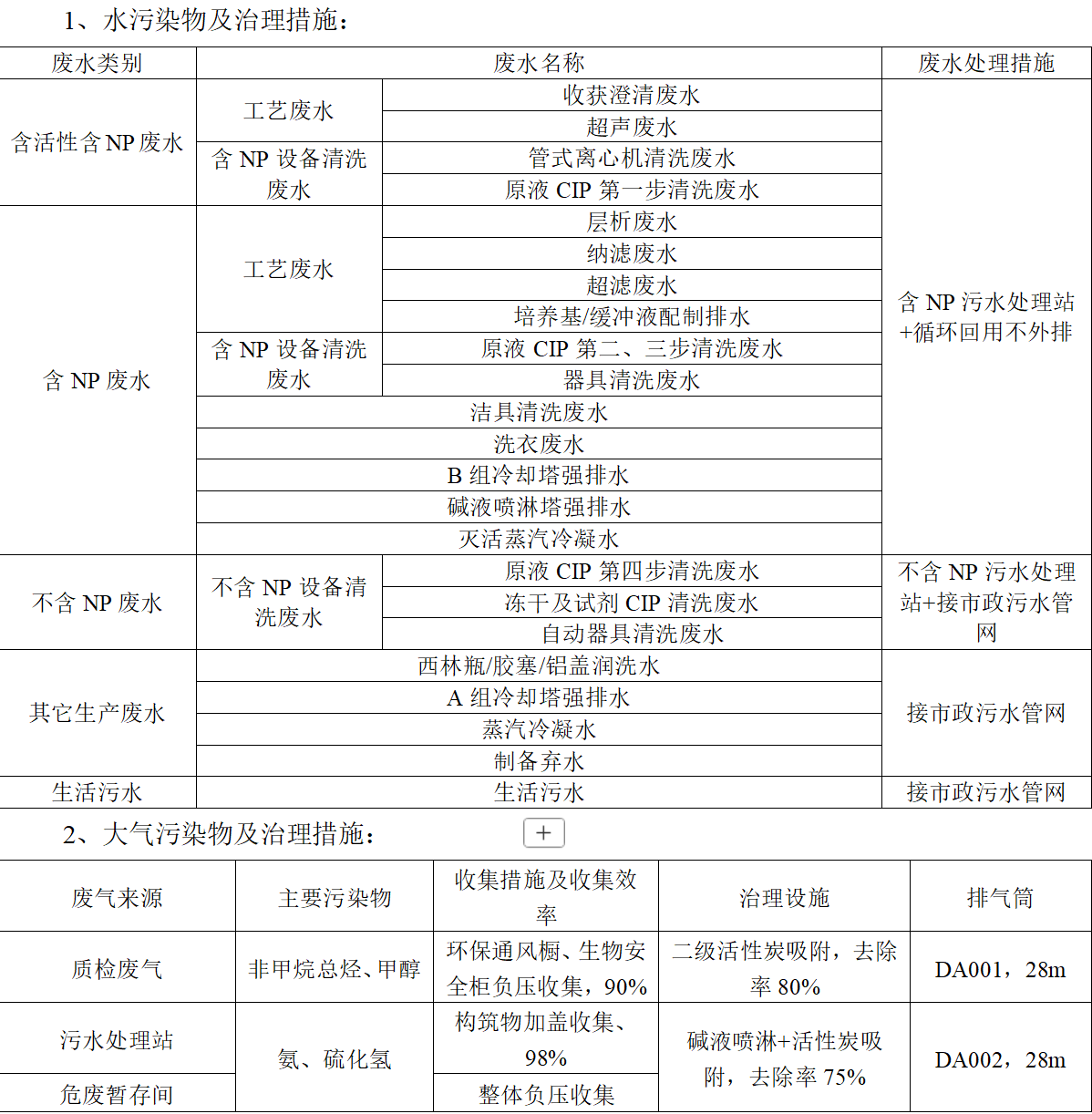 质检废气 非甲烷总烃、甲醇 环保通风橱、生物安全柜负压收集,90% 二级活性炭吸附,去除率80% DA001,28m